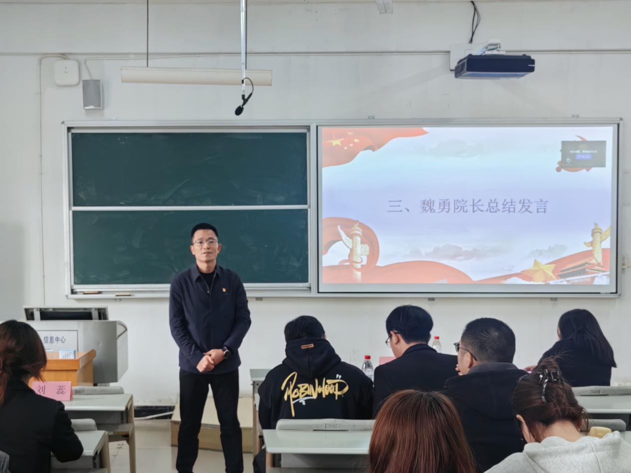 魏勇对所有答辩人的表现表示肯定,希望入党积极分子们在以后的学习和生活中强化理论学习,筑牢理想信念根基;深耕专业领域,提升综合能力素质;厚植服务意识,主动担当积极作为;恪守道德准则,树立先锋模范形象。