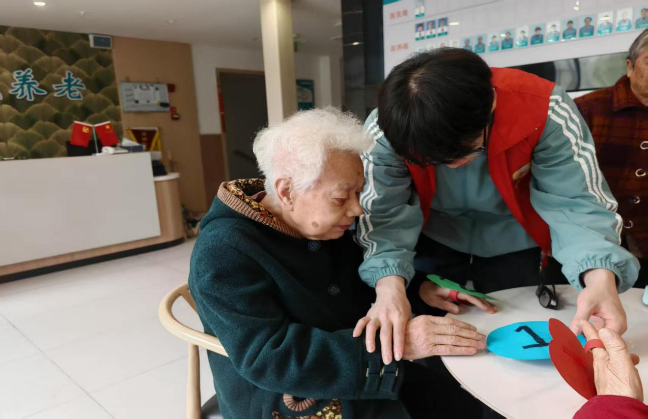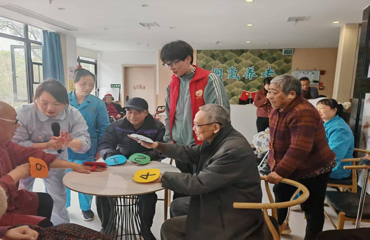 志愿者积极融入老人群体,组织“数字打地鼠”游戏,提前准备好材料并引导老人们积极参与其中,讲解加互动的过程,使老人们时刻洋溢着幸福的笑容;“拍打操”环节,志愿者在前方带领老人,耐心调整动作,让老人们得到了全身心的放松。