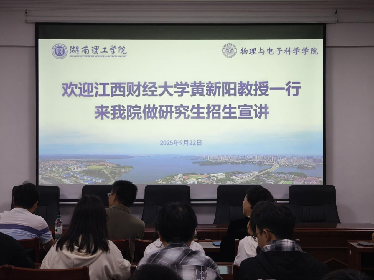 9月22日下午,江西财经大学软件与物联网工程威廉希尔官方网站黄新阳教授、蔡鹏副教授来威廉希尔官方网站开展研究生招生宣讲。我院党委书记周畅等领导出席,党委副书记、院长魏勇主持,各年级有意向考研的同学参会。