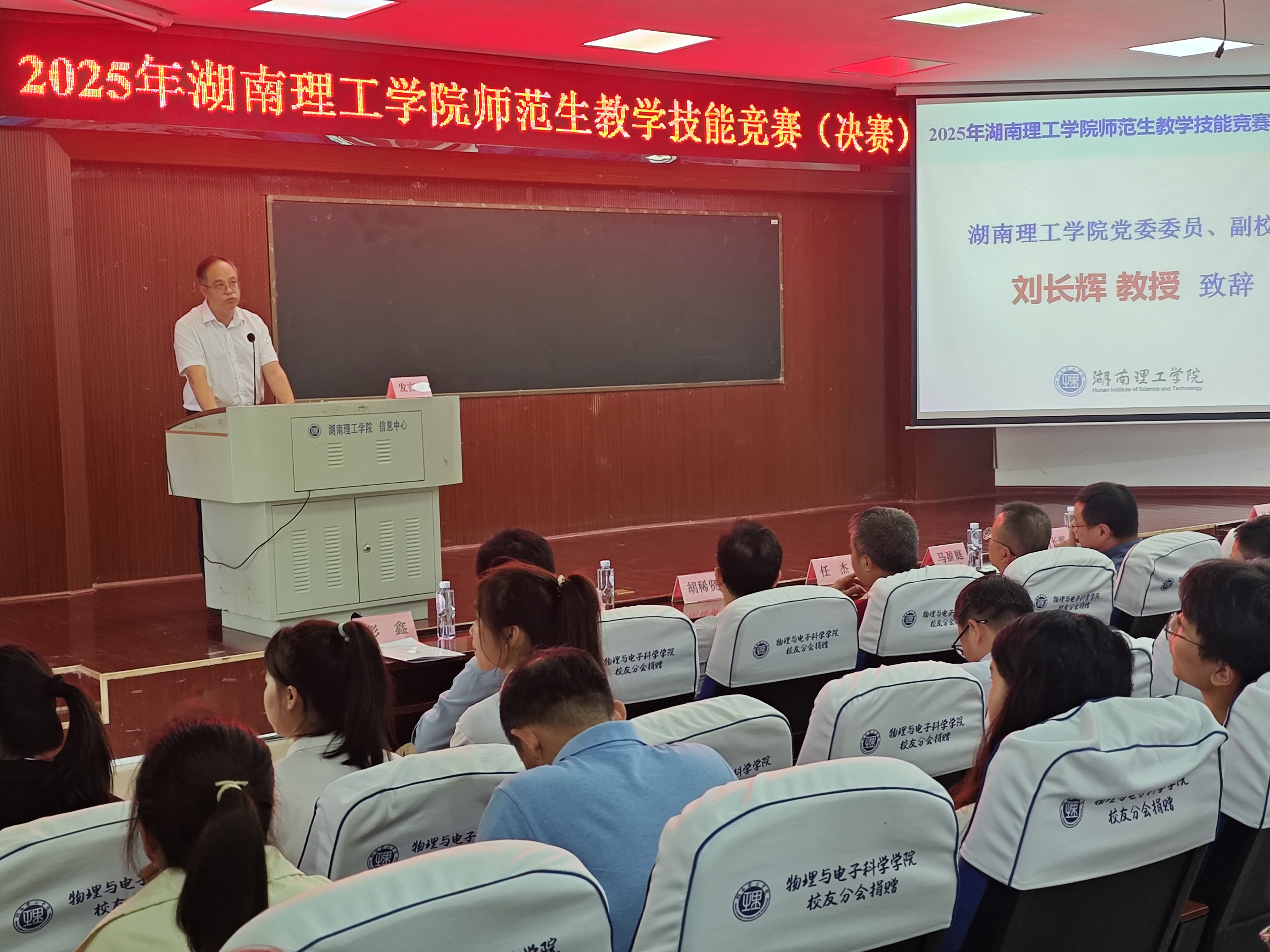 刘长辉代表学校感谢岳阳市各中学教学名师对我校学生的悉心指导,勉励参赛选手和全体师范生永葆教育初心、锤炼基本功,号召全校师生携手奋进、打造好“湖南理工”这一教育品牌。