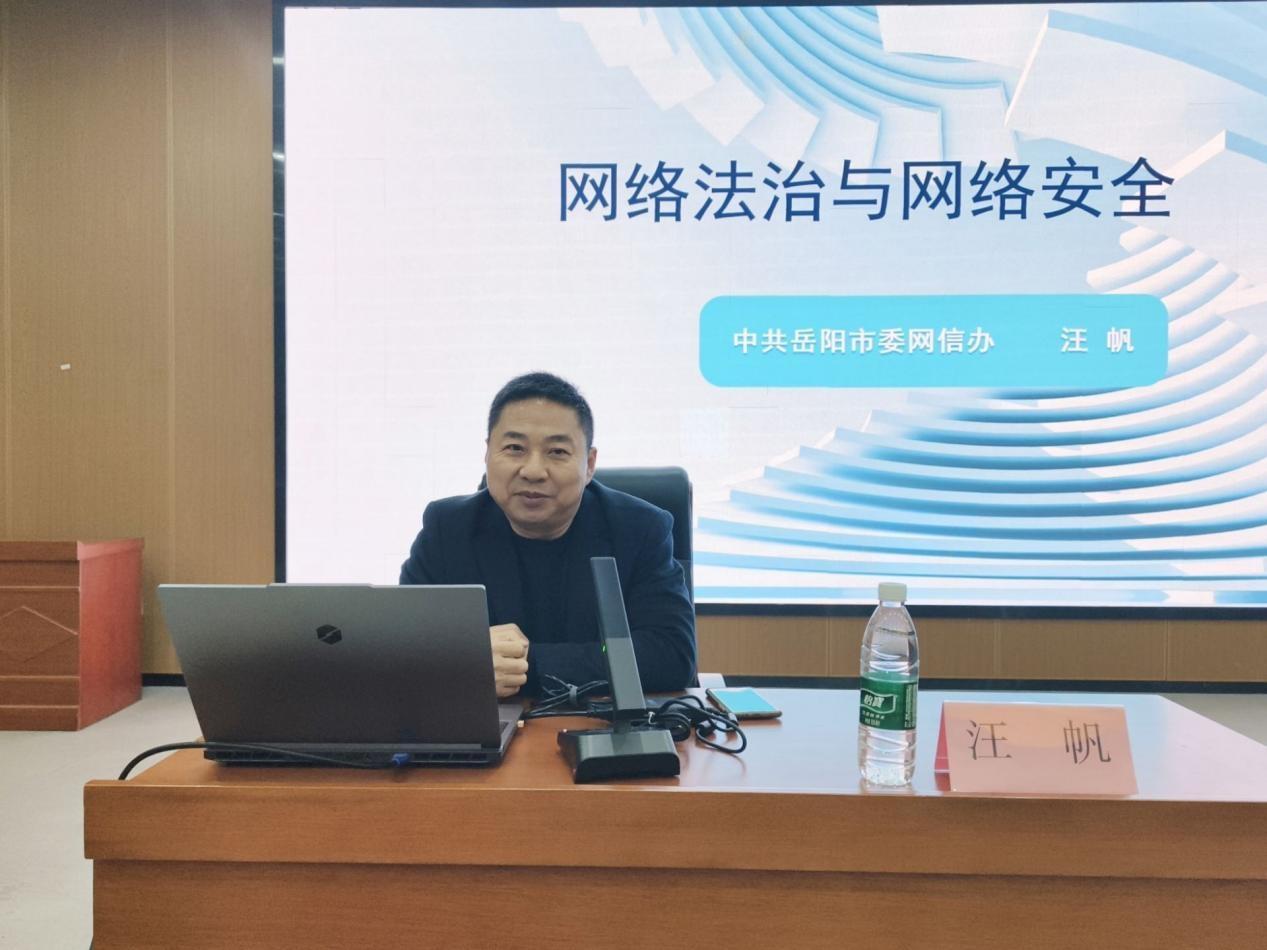 12月4日,威廉希尔官方网站在17118学术报告厅举办网络法治与网络安全讲座,岳阳市网信办汪帆科长受邀主讲,威廉希尔官方网站党委书记周畅、副书记石红芳、2024级辅导员李哲君出席,2025级辅导员刘莹主持,2025级本科生和研究生参与。