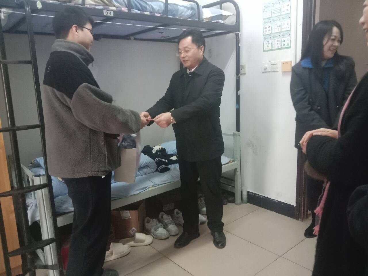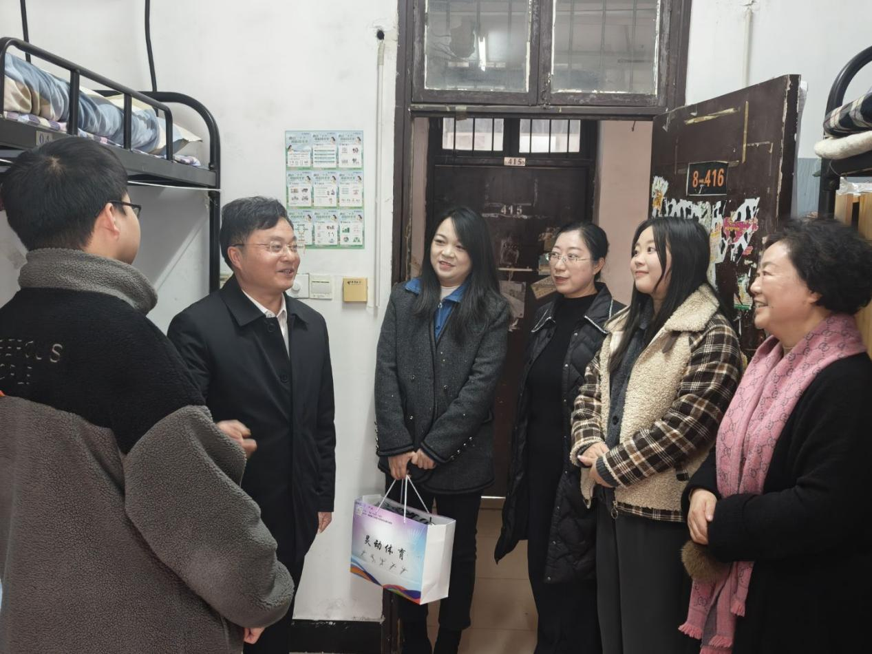 12月30日下午,副校长汤小红带队,校团委副书记彭璐、威廉希尔官方网站党委书记周畅、副书记石红芳及辅导员刘莹一行前往学生宿舍慰问学生。