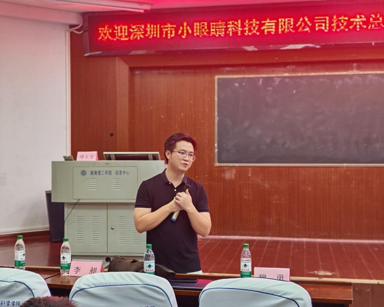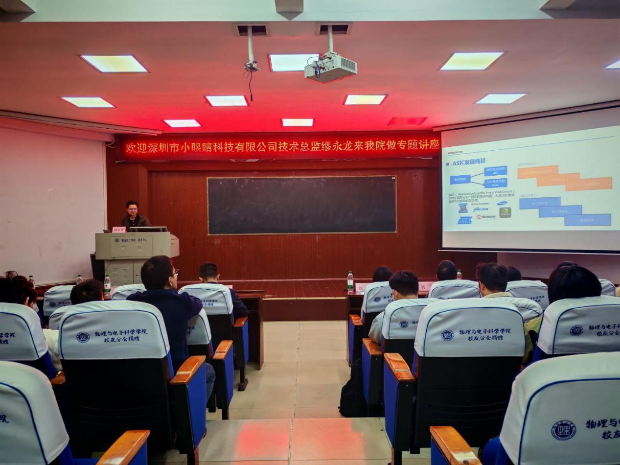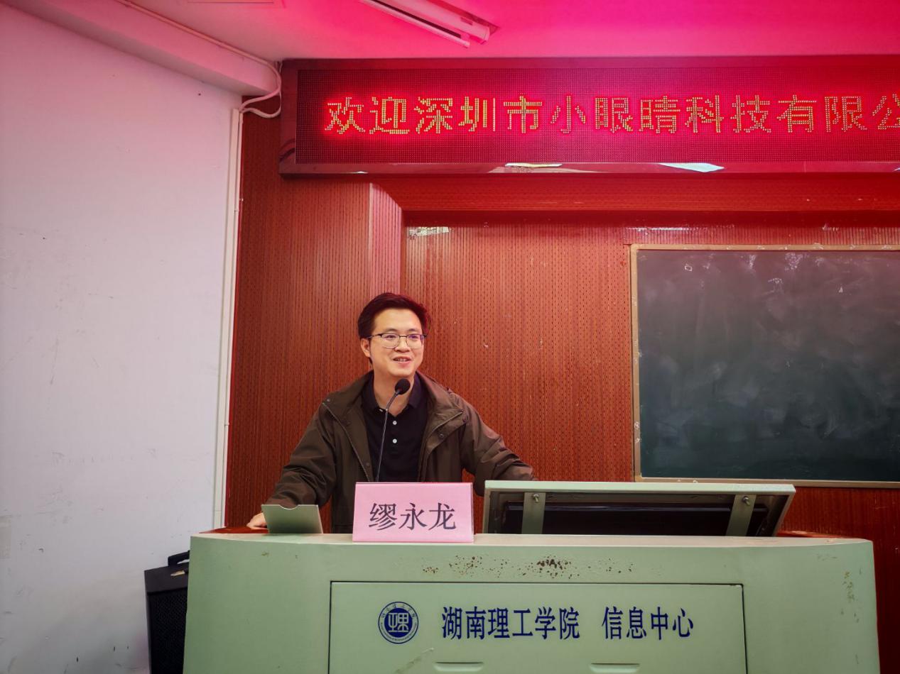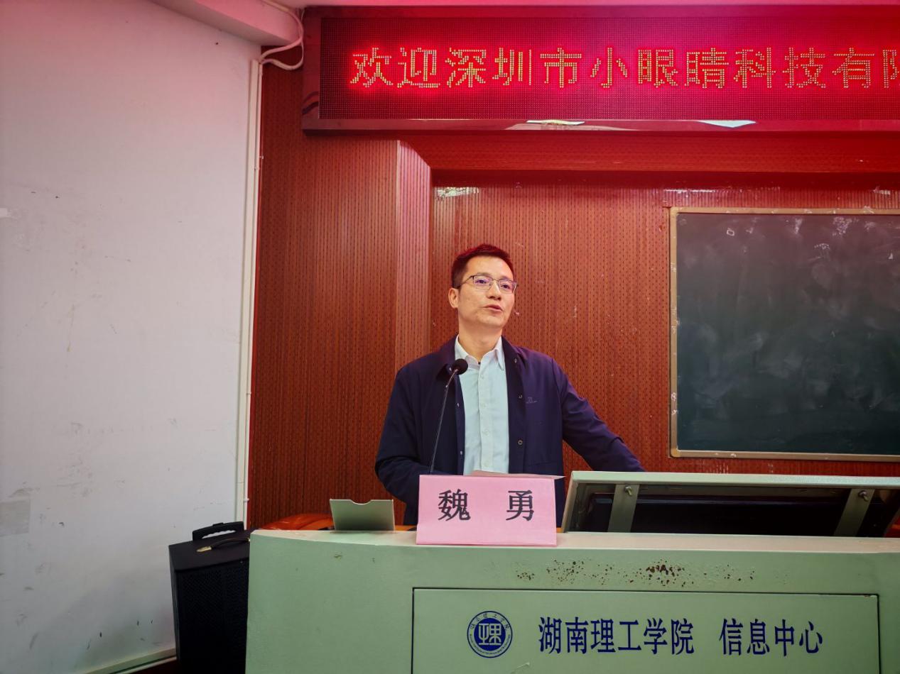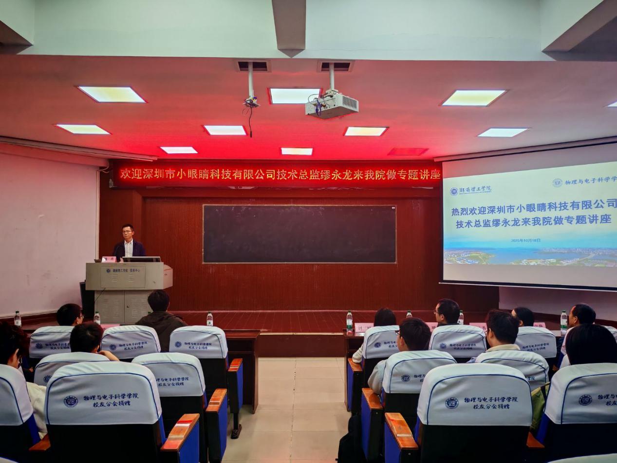 10月18日,深圳市小眼睛科技有限公司技术总监缪永龙来威廉希尔官方网站开展专题讲座,威廉希尔官方网站院长魏勇主持,党委副书记石红芳及电子、微电各专业任课教师参会。