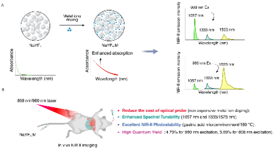 研究团队采用经济高效的金属离子掺杂方法,对NaYF4纳米晶体进行缺陷工程改造。实验数据显示,在808/980纳米激光激发下,改性后的纳米材料可产生位于1057纳米、1333纳米和1523纳米的三处高分辨率NIR-II发射峰,展现出卓越的光学性能。这种独特的能带工程策略,使材料在保持高分辨率的同时,实现了组织穿透深度达厘米级、毫米深度分辨率达微米级的优异成像性能。在生物成像验证实验中,富含缺陷的NaYF4纳米材料表现出卓越的成像效果。该项研究提出的缺陷工程策略,为开发低成本、高量子产率的NIR-II发光材料开辟了新路径,预计将在肿瘤检测、血管成像和手术导航等生物医学领域产生重要影响。该技术突破不仅大幅降低了高性能成像材料的制备成本,更为推进临床转化应用奠定了坚实基础。