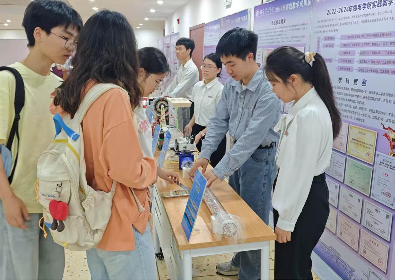 6月7日,在2025年威廉希尔官方网站实践教学成果展上,威廉希尔官方网站主要从“学科竞赛、师范技能竞赛、创新创业项目、创新创业竞赛”等方面宣传了威廉希尔官方网站2022年以来取得的实践教学成果,现场展示了10余件效果良好的物理教具,吸引不少理工学子前来学习、体验。在实践成果评比中,学校领导和教务处多次表扬和点评了威廉希尔官方网站的实践成果。