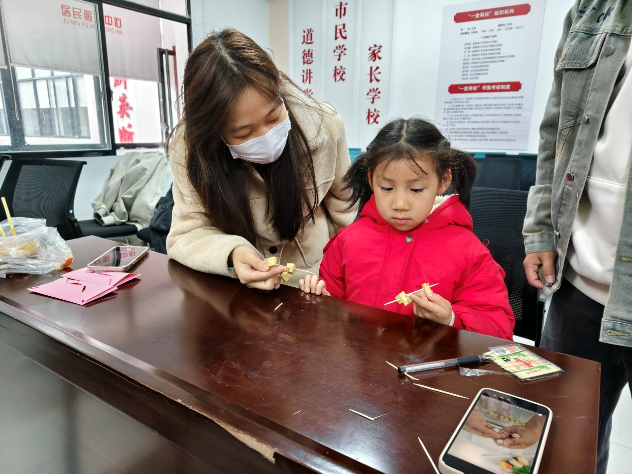 活动现场,志愿者手把手教小朋友做橡皮平衡鸟实验,讲解平衡原理与操作技巧,指导孩子们调整牙签长度、协助固定位置,帮助平衡鸟稳稳站立。小朋友们专注操作,在实践中解锁力学小知识。